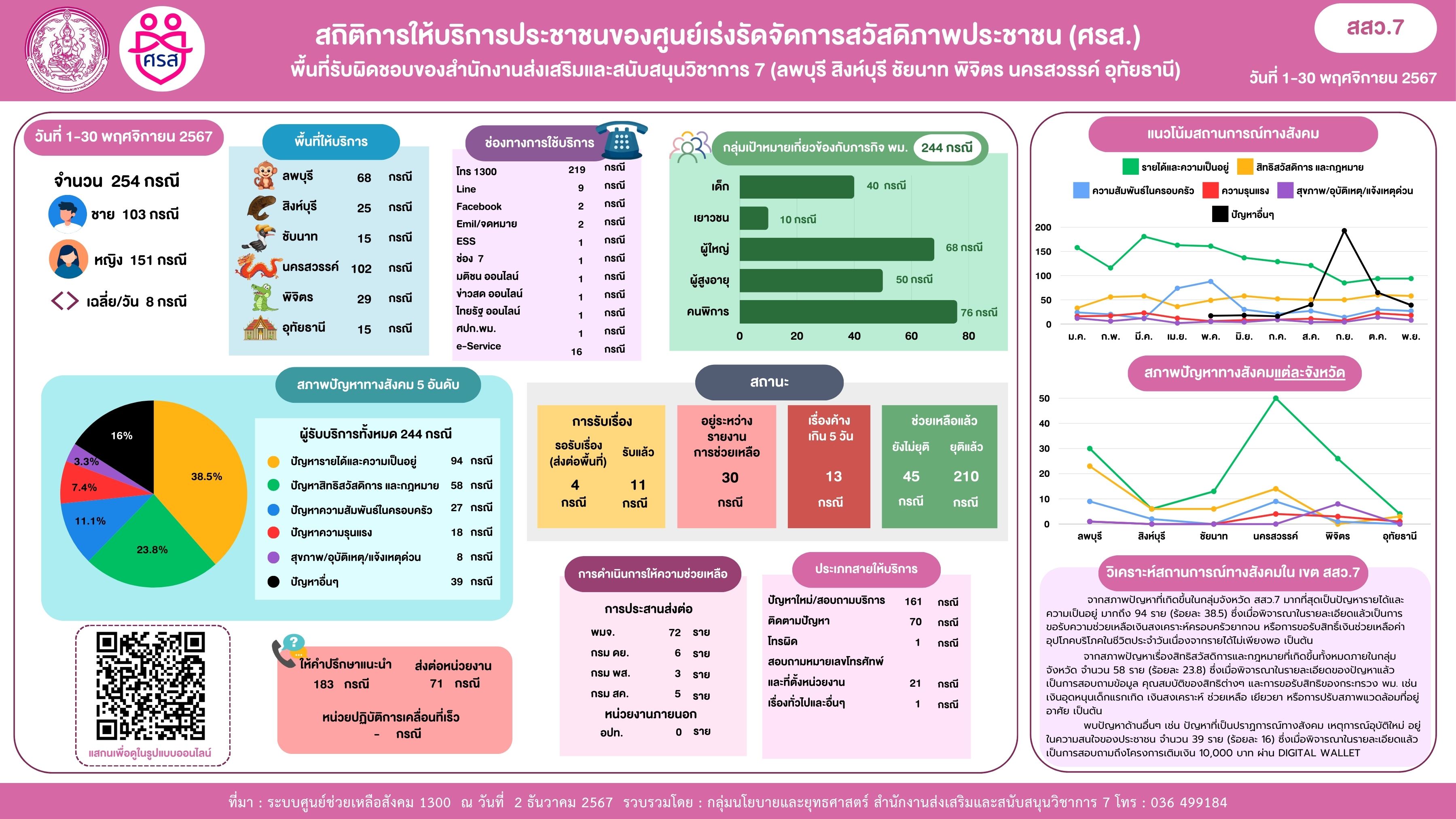 สถิติการให้บริการประชาชนของศูนย์เร่งรัดจัดการสวัสดิภาพประชาชน (ศรส.) เดือน พฤศจิกายน 2567 คลิกดาวน์โหลดเอกสาร ก่อนหน้า ต่อไป